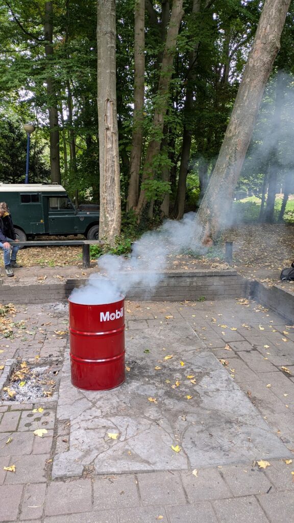 Henk had het geweldige idee om samen met de scouts een rookton te bouwen, maar het probleem was dat we geen ton hadden. Gelukkig worden er in de haven regelmatig lege vaten verkocht, dus snel op de bakfiets gestapt om er een te gaan halen.