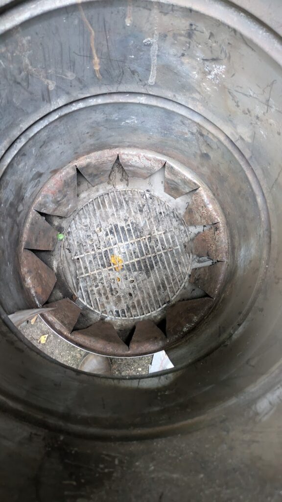 Zo komt het vat ’s nachts en in het donker bij het clubhuis aan. Na lang nadenken en plannen, verschillende ideeën en overwegingen, vinden we een tweedehands barbecue – dat lijkt een goede keuze! Het lot wil dat de barbecue perfect past, zowel boven als onder!