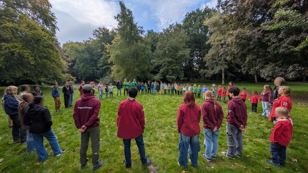 Dit traditionele ritueel benadrukt de ontwikkeling van onze leden. Elk lid ‘vliegt over’ zodra ze de leeftijd hebben bereikt waarop de volgende speltak een passender en uitdagender programma biedt, bijvoorbeeld van de Bevers (5-7) naar de Welpen (7-11), of van de Scouts (11-15) naar de Explorers (15-18). Het is een viering van hun prestaties en een warme verwelkoming in hun nieuwe avontuur!