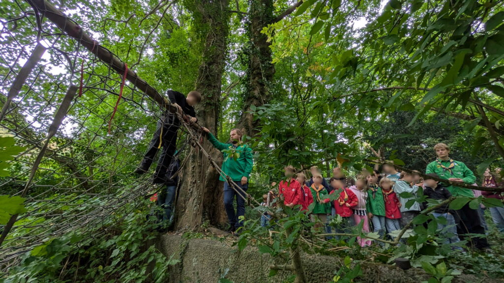 De ceremonie zelf is altijd een spannend en creatief moment! De jeugdleden die overvliegen, steken op een ludieke en symbolische manier ‘over’. Dit kan via een touwbrug, een vlot, een hindernisbaan, of een andere uitdaging die bij het jaarthema past. Aan de overkant worden ze opgewacht door hun nieuwe speltak, klaar voor een volgende fase vol Scoutingplezier en vriendschappen.