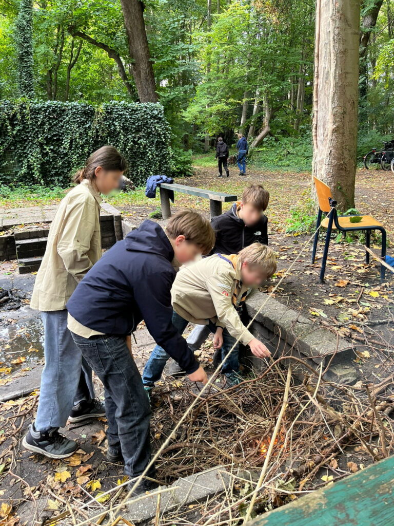 Vervolgens hebben we de nieuwe scouts ingewijd in het maken van een klein vuurtje en welke patrouille het eerste het boven het vuurtje gespannen touwtje heeft doorgebrand.
